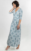 This dress is a head-turner! This wrinkle-free fabric combines pajama-level comfort with the elegance of a full-length wrap dress. You'll float like a butterfly in this silky silhouette that packs a versatile punch. Whether you're heading to the office, a wedding reception, or a night on the town, the Natalie is sure to be your new go-to dress! - Made in the USA