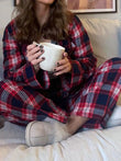 Plaid Collared Neck Button Up Top and Pants Lounge Set