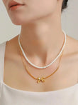 - Material: Synthetische Perle, 18 Karat vergoldet, Titanstahl