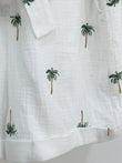 Palm Tree Print Short Sleeve Button-Up Romper with Belt