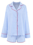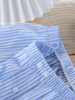 Striped Button Up Shirt and Shorts Lounge Set