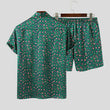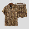 Summer Wear Men Sets Leopard Printed Lapel Short Sleeve