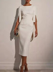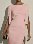 Vestido midi elegante de corte entallado con abertura en la manga con cuentas