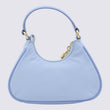 Descripción: Bolso azul de Chiara Ferragni con bolsillo de látex con el icónico logotipo, cremallera superior, cadena para el hombro y adorno.