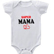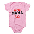 Soft cotton baby romper with playful "Super Mama" or "Super Papa" prints, perfect for boys and girls aged 0-24 months. Features short sleeves, an O-neck, and snap closures for easy dressing. Available in multiple colors and styles.