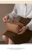 Bolsa de cosméticos de cuero, organizador de maquillaje, neceser femenino.