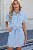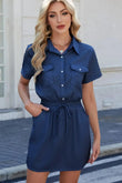 Drawstring Collared Neck Short Sleeve Denim Dress