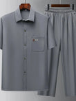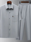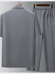 Conjunto de pantalón y camiseta de manga corta con botones para hombre, talla grande
