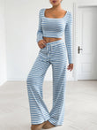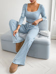 Striped Square Neck Long Sleeve Top and Pants Lounge Set