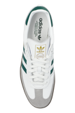 Découvrez les baskets SAMBA OG de la célèbre marque ADIDAS ORIGINALS, qui allient classicisme et modernité. Leur couleur blanche dominante, rehaussée de subtiles touches de vert foncé sur les bandes et le talon, associée à une semelle en caoutchouc marron, en fait un symbole d'élégance et de style. L'empeigne en cuir lisse, enrichie d'empiècements en daim à l'avant, garantit une esthétique soignée et une grande durabilité. Des détails comme le logo « Samba » doré sur le côté et le logo Adidas doré sur la languette leur confèrent une allure luxueuse. La semelle extérieure en caoutchouc, dotée d'un motif distinctif, assure une excellente adhérence, tandis que la semelle intérieure ornée du logo Adidas offre un confort optimal à chaque pas. Ces chaussures à lacets sont un incontournable pour tous les adeptes d'une élégance sportive. POURQUOI ACHETER CE PRODUIT ? * Un design classique inspiré du style vintage. * Fabriquées en cuir et daim de haute qualité. * Polyvalence et confort au quotidien. * Look iconique avec les trois bandes et les détails dorés. * Signature de la marque ADIDAS Originals. Hauteur de la semelle au point le plus haut : 2 cm