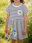 Robe à rayures et col rond pour enfants avec de jolis appliqués
