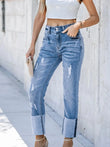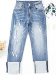 Jean taille haute à jambes droites délavées
