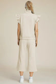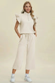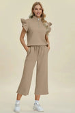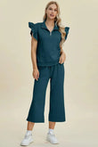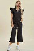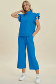 Double Take Full Size Texture Ruffle Short Sleeve Top and Wide Leg Pants Set