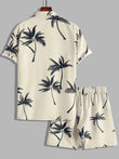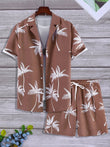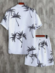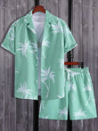 Men's Full Size Palm Print Button Up Shirt and Shorts Set Plus Size